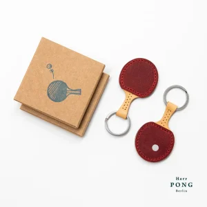 A pair of Mini Ping Pong Leather Keychains