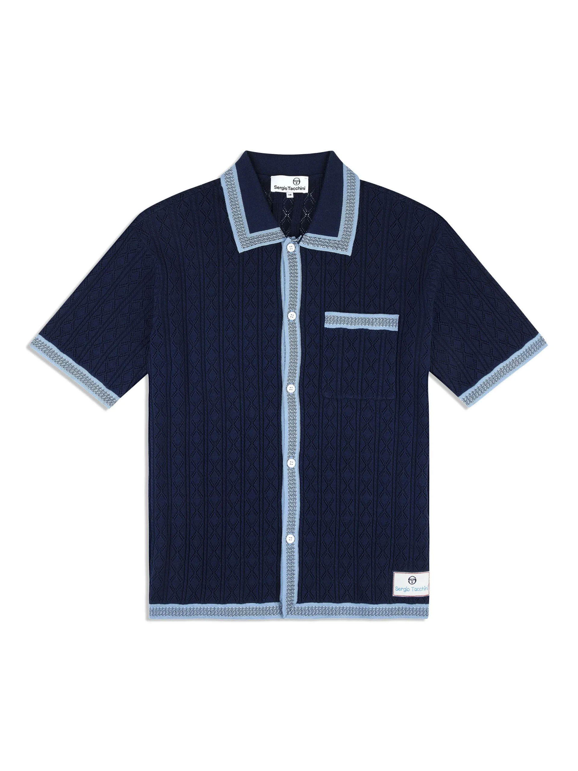 A luxurious take on vintage resort leisurewear, the Aldo Pointelle Polo is crafted from premium high-twist cotton yarn using an airy open pointelle-knit technique that’s lightweight, breathable, and exceptionally soft to the touch. Designed with exquisite attention to detail, this elevated polo is complete with jacquard-knit stripe trims and a custom Sergio Tacchini label at the hem.