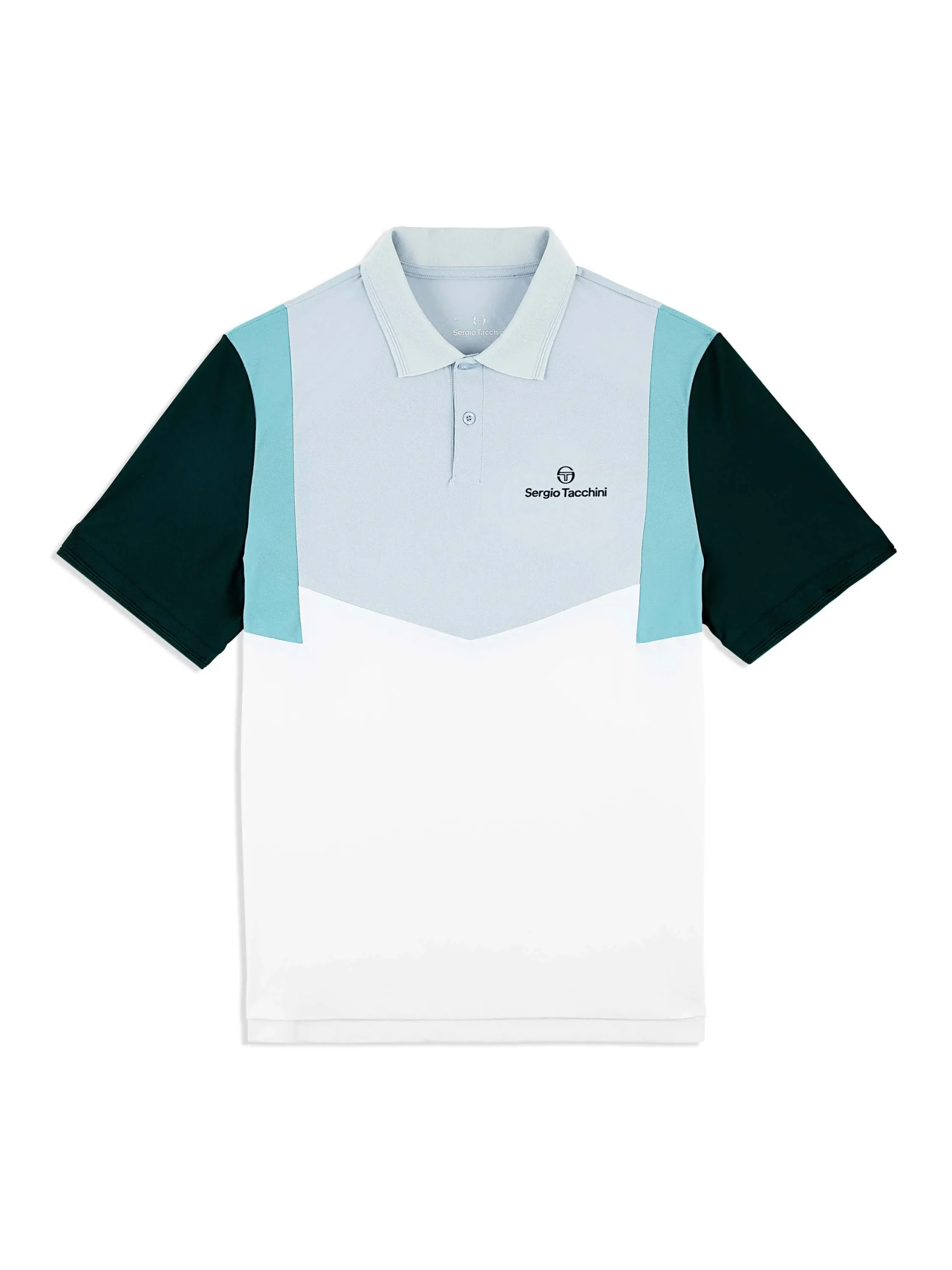 The Angolo Polo is made of moisture-wicking performance piqué with a subtle stretch to keep you cool and moving freely through any workout. Perfect for on and off-court wear, this color-blocked polo is complete with chevron seam detailing at the front and a Sergio Tacchini logo at the left chest.