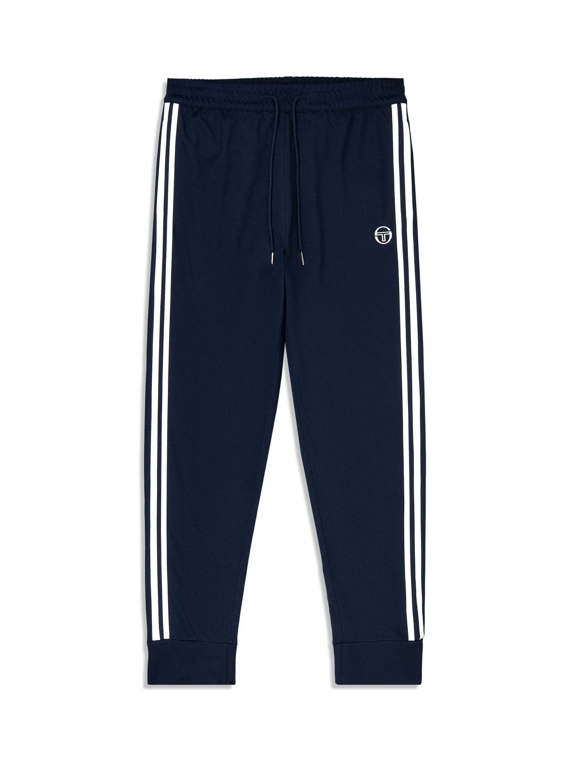 A long-time Tacchini classic, the Damarindo Track Pant is made of wrinkle-resistant twill to keep you looking fresh on the court and in the streets. Part of our heritage Archivio Collection—celebrating classic designs from the archive—these elevated track pants are complete with our distinctive double-stripe down the legs and an embroidered ‘ST’ monogram logo embroidered at the left thigh.