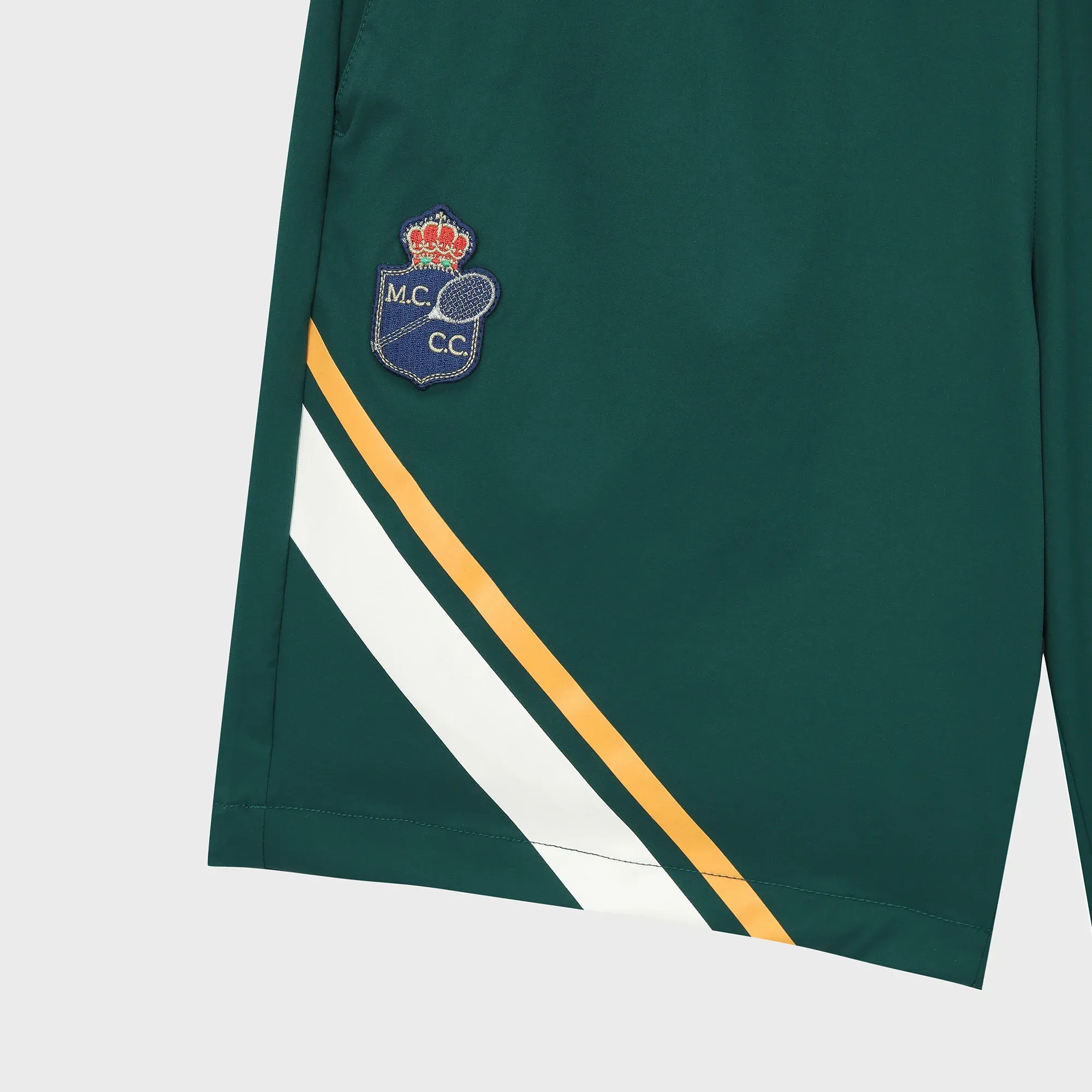 The MC Advantage Staff Shorts are part of our dedicated collection designed for staff at the annual Rolex Monte-Carlo Masters Tournament. Crafted from lightweight stretch nylon, these athletic shorts feature diagonal double stripe accenting and Monte Carlo Country Club’s prestigious crown logo at the right leg.