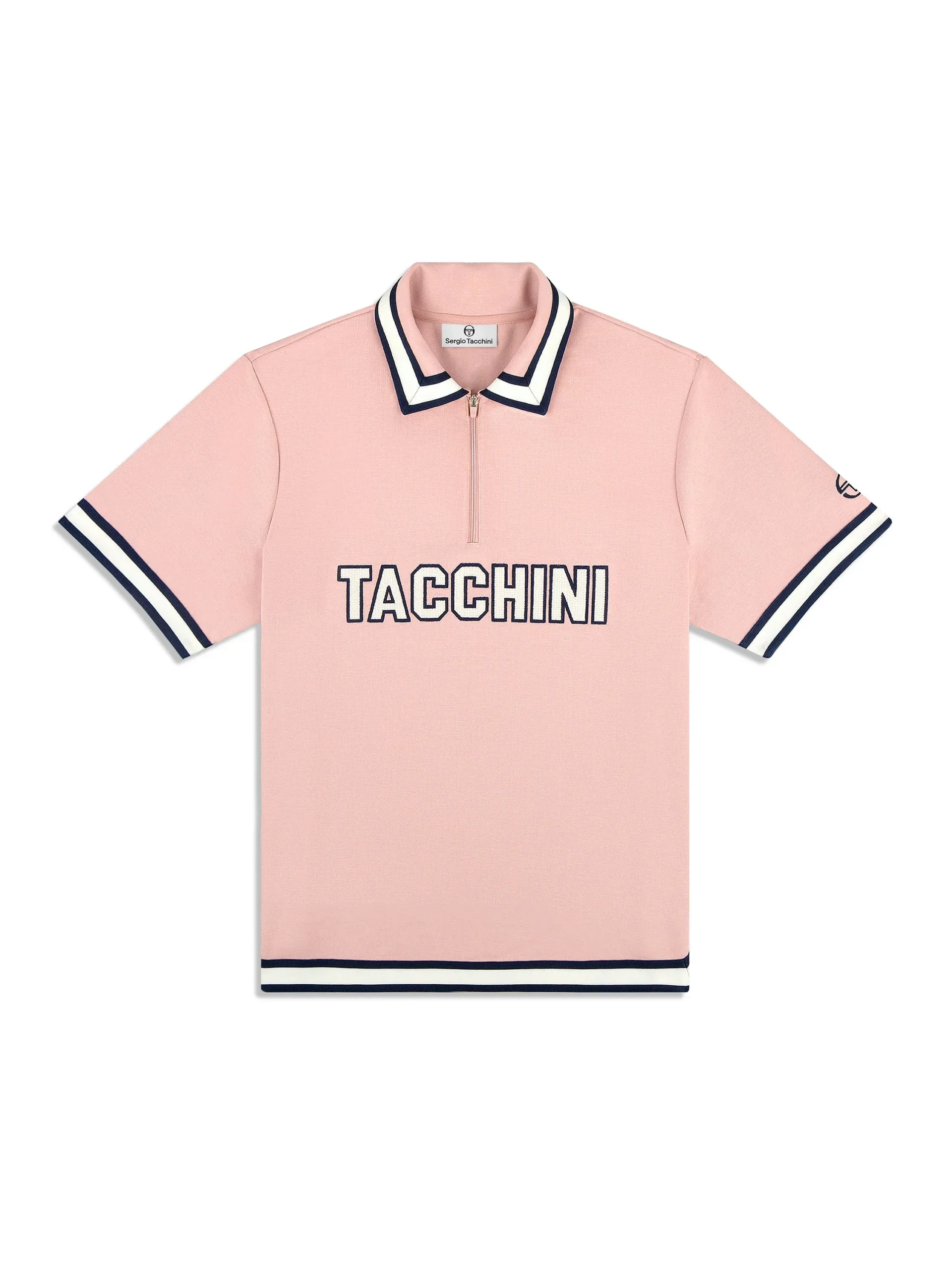 Keep it sharp with the elevated Tito Polo, crafted from heavyweight interlock fabric with an incredibly soft handfeel and subtle stretch for a refined finish. Topped with a zippered placket, this premium polo is complete with a notched hem, striped rib-knit taping at the trims, and a bold chainstitched Tacchini logo at the chest.